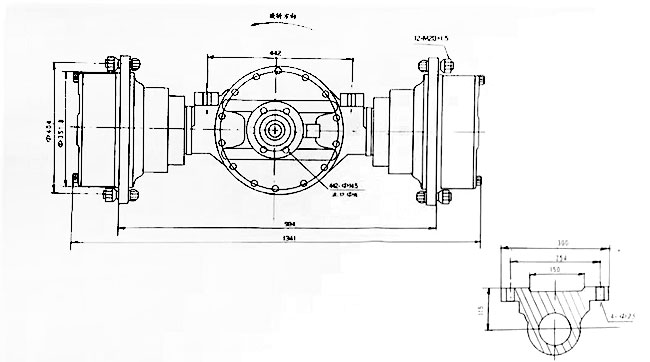 本廠驅動橋為剛性橋,位于傳動系的末端,采用兩級減速一級為主傳動螺旋傘齒輪減速,一級為輪邊行星齒輪減速,差速功能采用行星差速器,行車制動鉗盤式制動器。