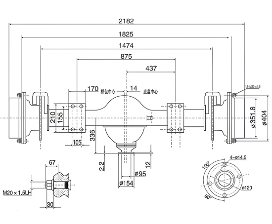 本廠驅動橋為剛性橋,位于傳東西的末端,采用兩級減速一級為主傳動螺旋傘齒輪減速,一級為輪邊行星齒輪減速,差速功能采用行星差速器,行車制動鉗盤式制動器。